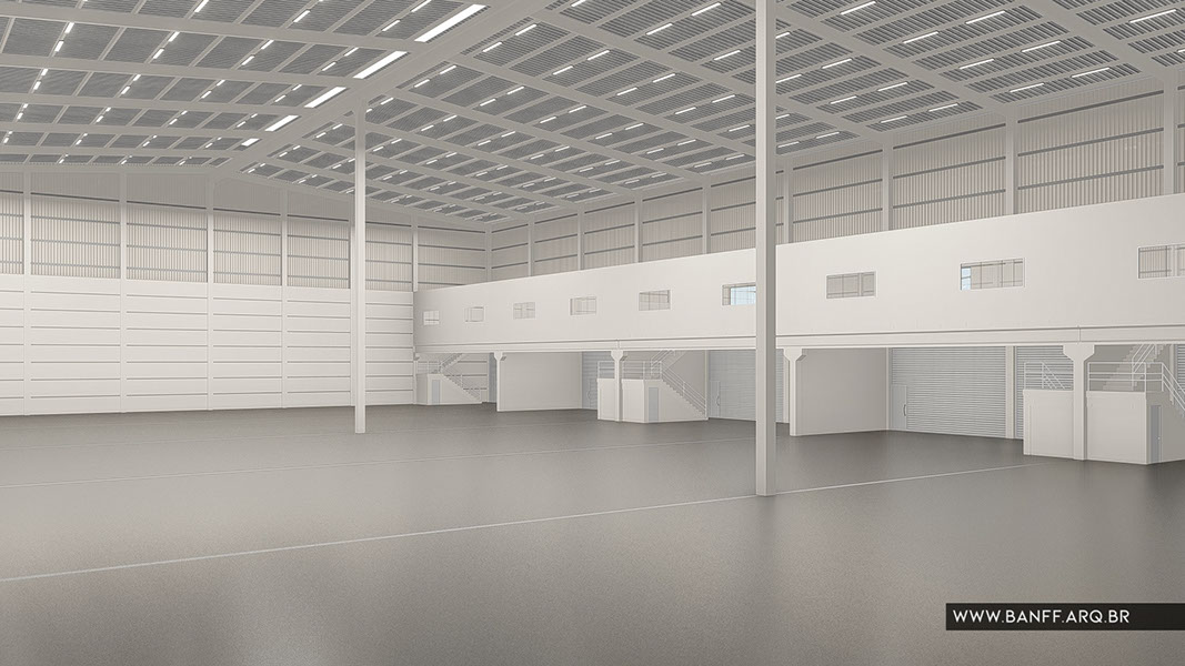 • Galpão 03 de 5.827,5m² com 7 módulos de 720m² + 112,5m² de mezanino